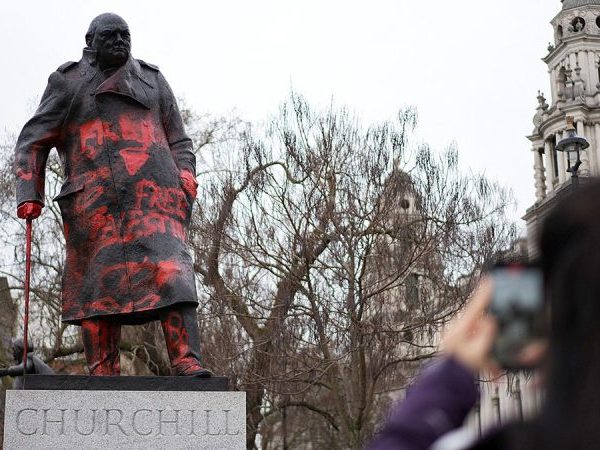 A man was arrested after a statue of late United Kingdom Prime Minister Winston Churchill was defaced with red graffiti in London, the Metropolitan...
